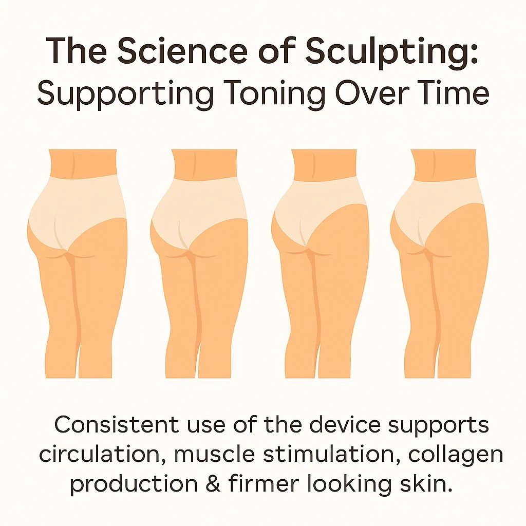 - Cupping Suction: Creates the same lift BBLs promise—naturally training your skin to sit higher