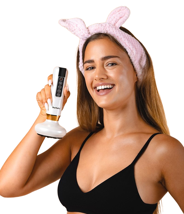SheVitality's Advanced Anti-Cellulite Massager combines professional-grade treatments into one easy-to-use portable device for at-home convenience. It utilizes a synergy of red light therapy, infrared heat, adjustable cupping suction, and scraping techniques—commonly used to reduce cellulite and improve skin elasticity. These methods work together to target stubborn cellulite, boost circulation, and rejuvenate your skin while allowing you to adjust suction levels for optimal comfort.